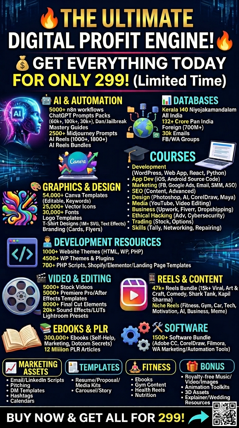 - 2000+ Viral reels (motivation, fitness, business, AI)